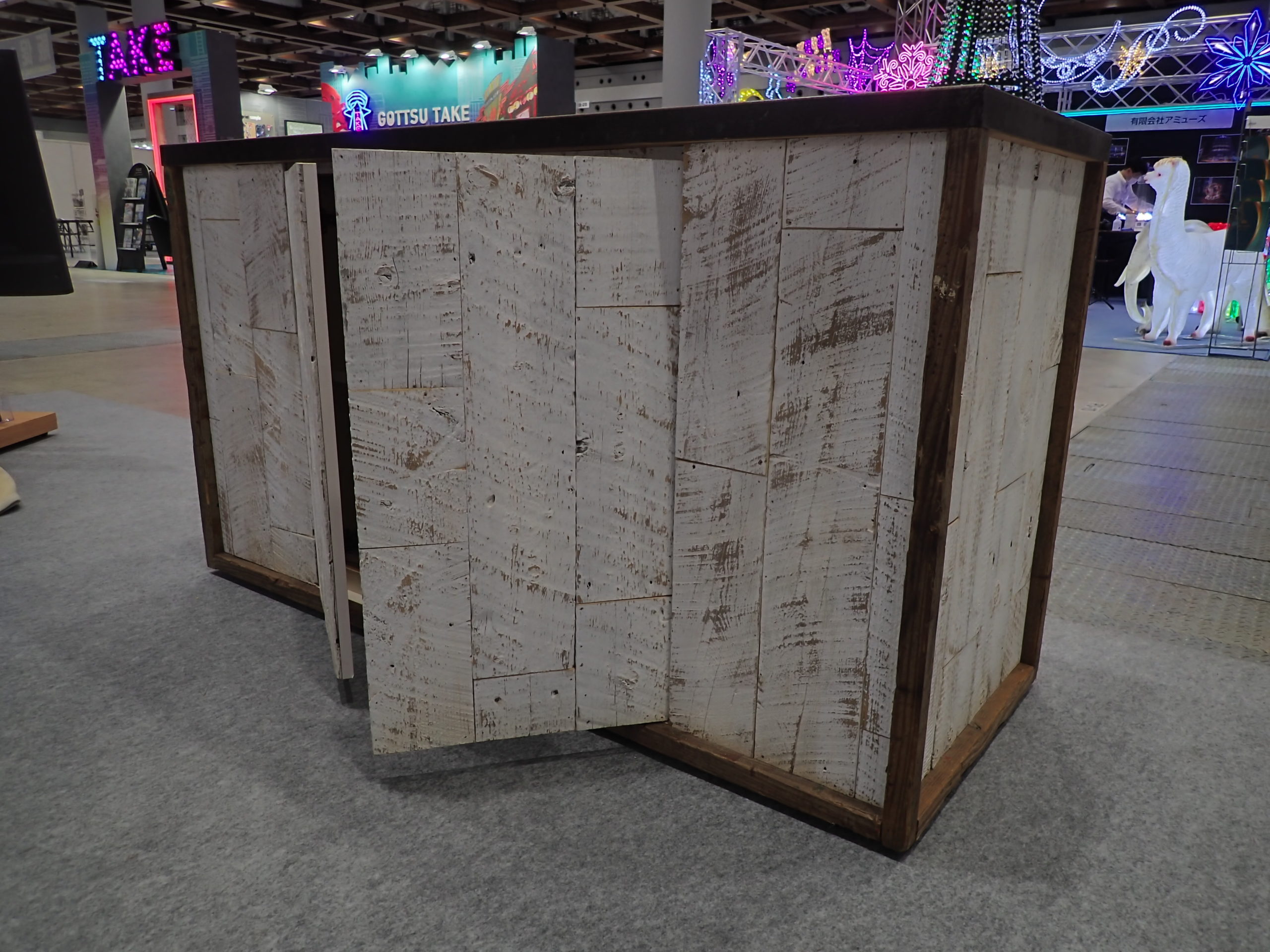 ◎斜め45度。古木材へ白塗装、からの手作業でのサンディングでムラ出ししてます。