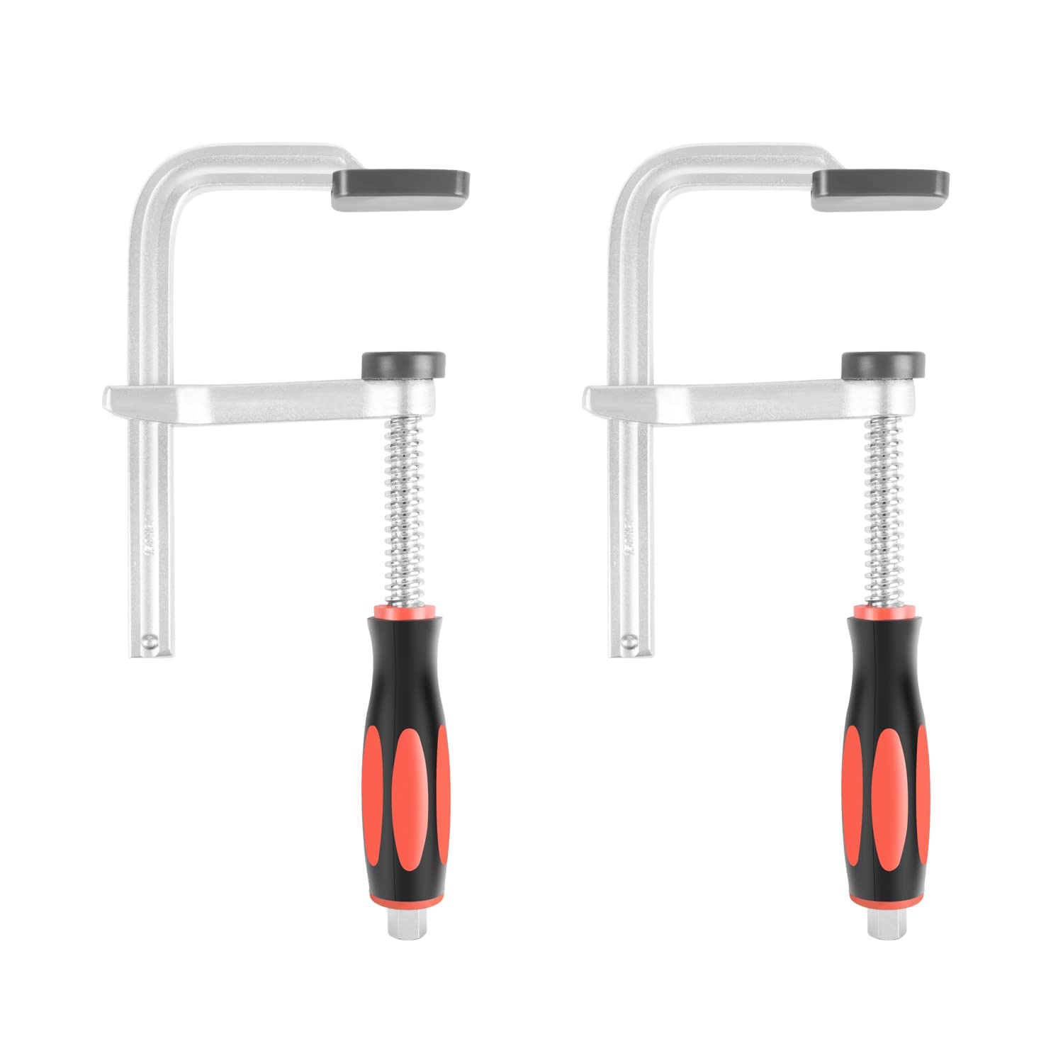 クランプやハタガネと呼ばれる金物で、什器同士のツラが合うように挟み込んで固定します。