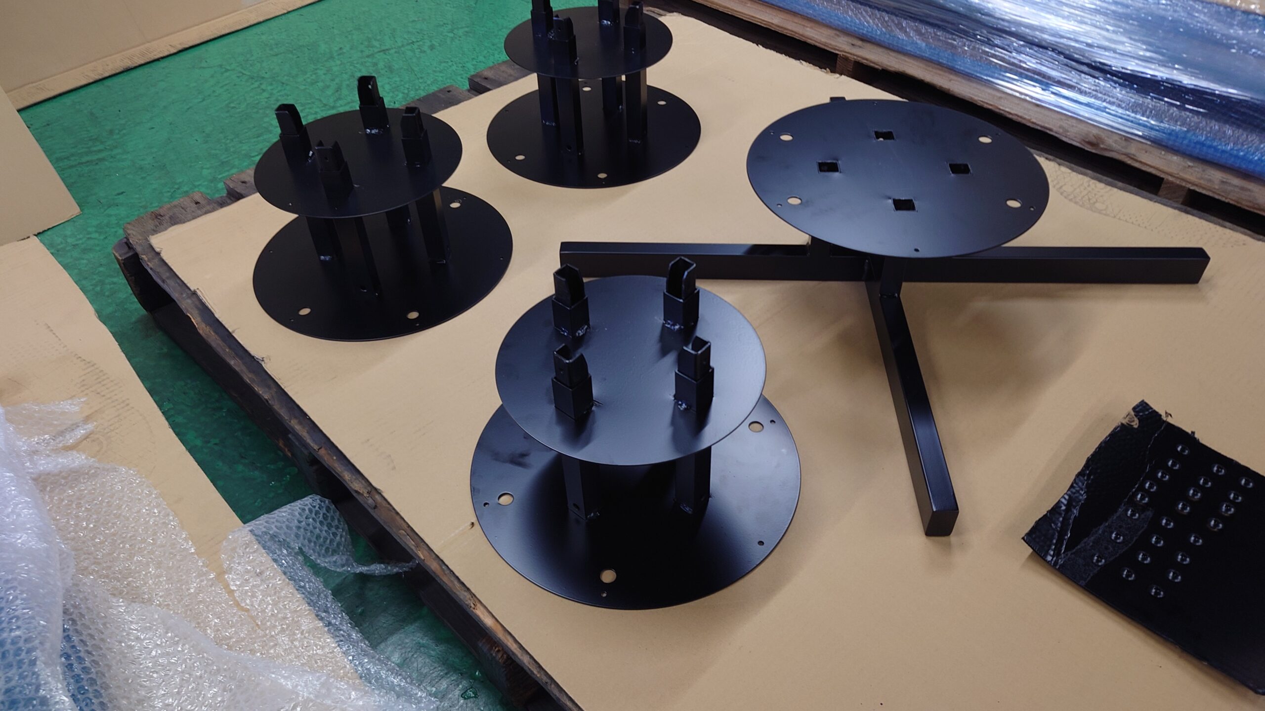 こちらが塗装後のフレームの写真になります。納品先の搬入経路の兼ね合いもあり分割構造になっています。